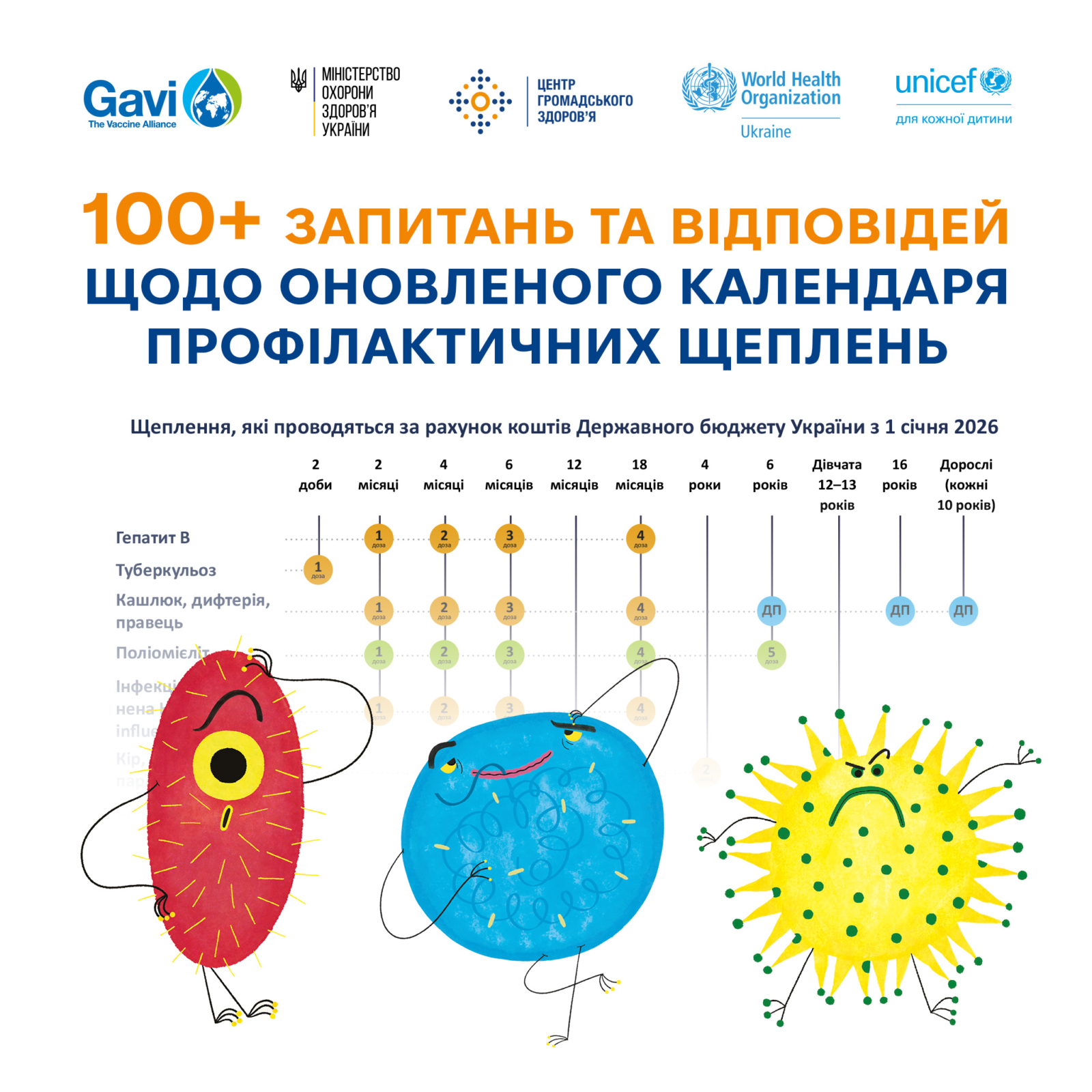 Для допомоги батькам, медичним працівникам і всім, хто шукає чіткі та перевірені відповіді про зміни в Календарі профілактичних щеплень з 2026 року, ми публікуємо інформаційний матеріал у форматі 100+ запитань і відповідей.