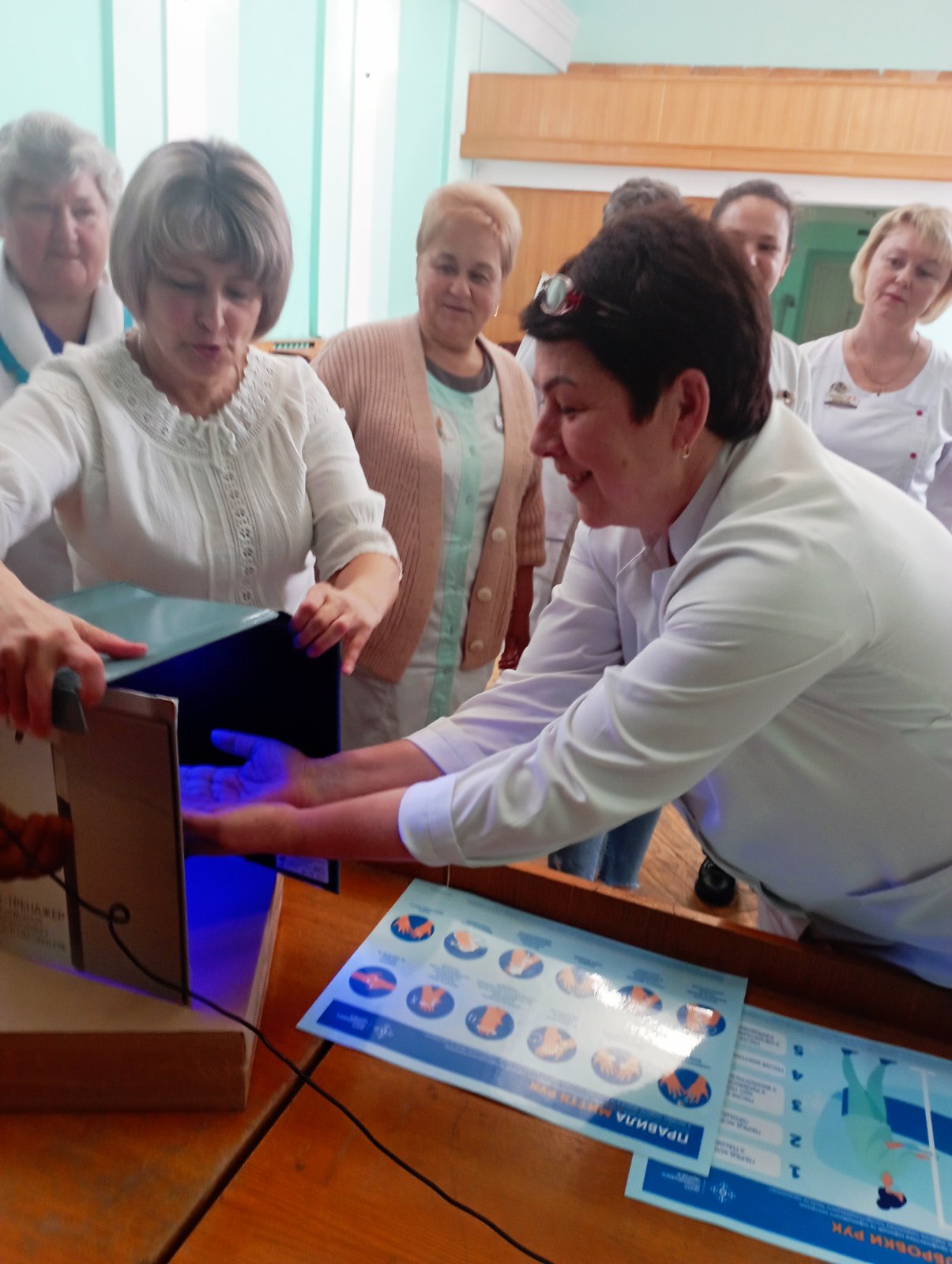 За дорученням генерального директора ДУ «Житомирський ОЦКПХ МОЗ України» Олександра Шпити фахівцями обласного відділу інфекційного контролю проведено практичне заняття з акушерками «Центру жіночого здоров’я» та іншими середніми медичними працівниками КП «Лікарня №1» ЖМР поліклініка №1 на тему «Руки – основний фактор у виникненні та розповсюдженні ІПНМД у ЗОЗ».