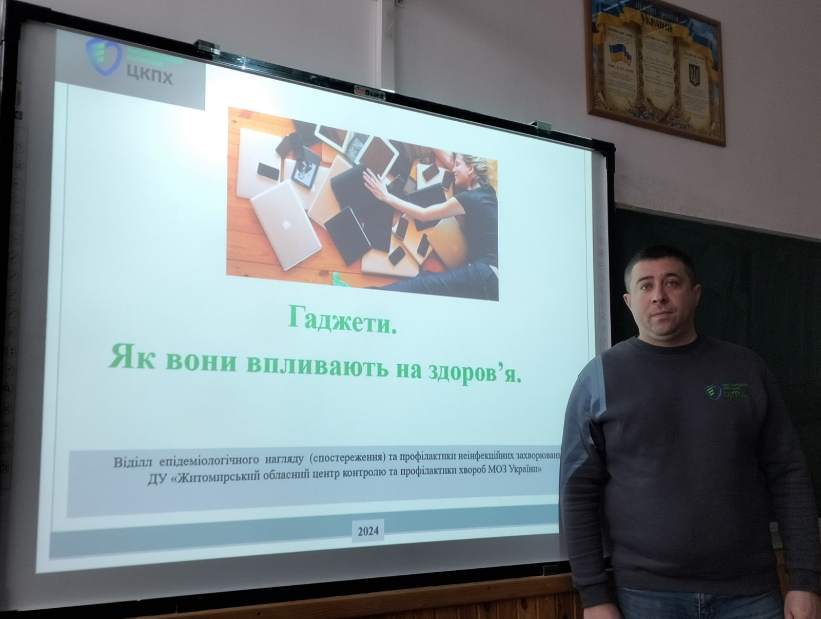 За дорученням в.о. генерального директора ДУ «Житомирський ОЦКПХ МОЗ» Олександра Шпити фахівці відділу епіднагляду (спостереження) та профілактики неінфекційних захворювань 11-12 березня провели презентацій у ліцеях № 28 та №1 з метою популяризації здорового способу життя. Темами виступів стали боротьба із шкідливими звичками, зокрема негативним впливом гаджетів на здоров’я підлітків, важливість здорового та збалансованого харчування, дотримання правил особистої гігієни, особливо в умовах підвищеної захворюваності на грип та ГРВІ.
