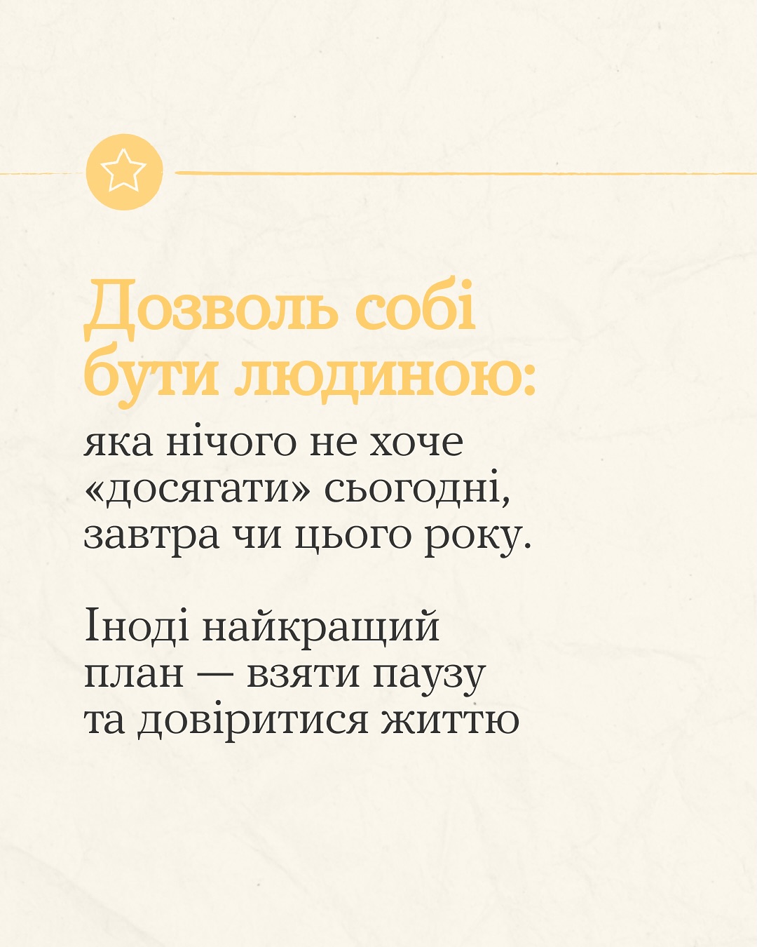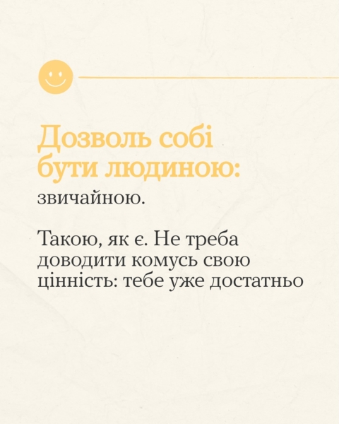 5 серпня 2025Прийшли нагадати: ти можеш бути неідеальною людиною. Зі своїми недосконалостями та особливостями