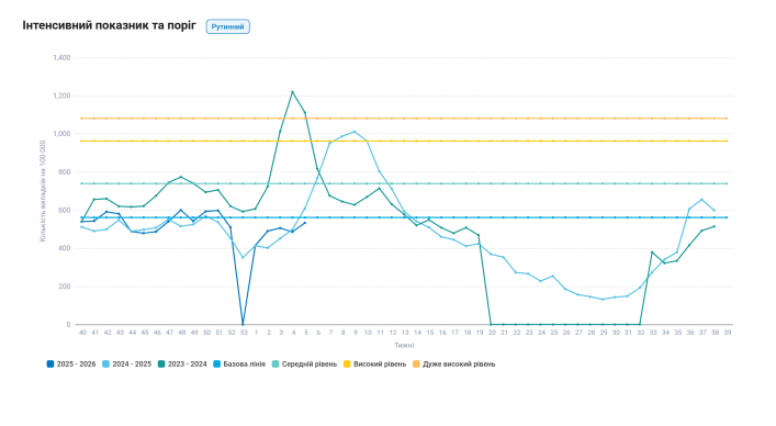 Протягом 5 тижня 2025 року захворюваність на гострі респіраторні вірусні інфекції серед населення Житомирської області зросла. За поточний тиждень зареєстровано 6285 випадків (532,7 на 100 тис.нас.), що на 9,6% більше ніж минулого тижня. Поряд з тим рівень інтенсивності епідемічного процесу для області є низьким, показники захворюваності продовжують бути нижче епідемічного порогу (-5,1%). В тому числі 3 випадки Covid-19, що на рівні з минулим тижнем. Серед захворілих всі дорослі.