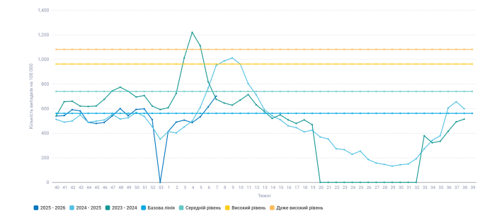 Захворюваність на гострі респіраторні вірусні інфекції серед населення Житомирської області і надалі продовжує зростати. Протягом 7 тижня 2026 року зареєстровано 8275 випадків (701,4 на 100 тис.нас.), що на 14,3% більше ніж минулого тижня. Показники захворюваності вище епідемічного порогу на 25% і відповідає середньому рівню інтенсивності епідемічного процесу. В тому числі 20 випадків Covid-19, що на 2 випадки більше ніж минулого тижня, 6 з них серед дітей.