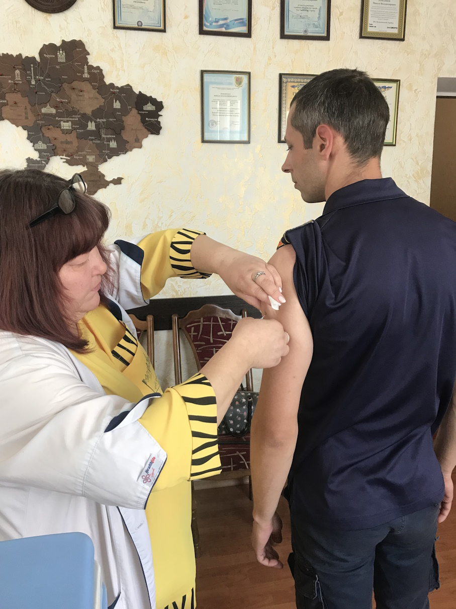 В рамках Всесвітнього тижня імунізації фахівці Коростишівського відділення спільно з медиками Коростишівського ЦМПСД відвідали 20-ту Державну пожежно-рятувальну частину 1-го Державного пожежно-рятувального загорну ГУ ДСНС у Житомирській області.