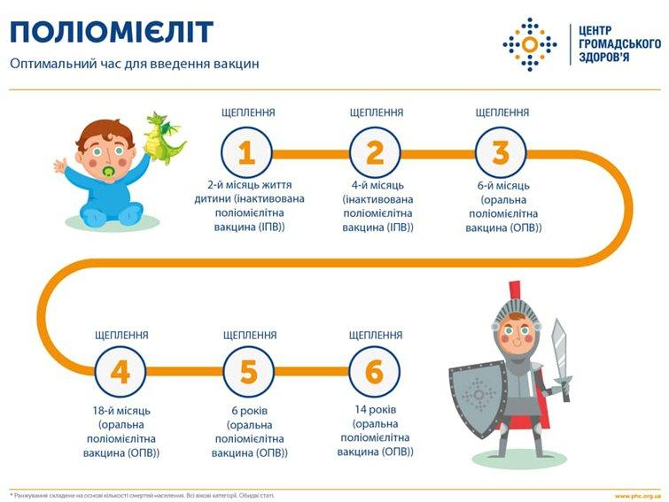 Графік вакцинації включає в себе 6 щеплень, починаючи від 2 і до 14 років.