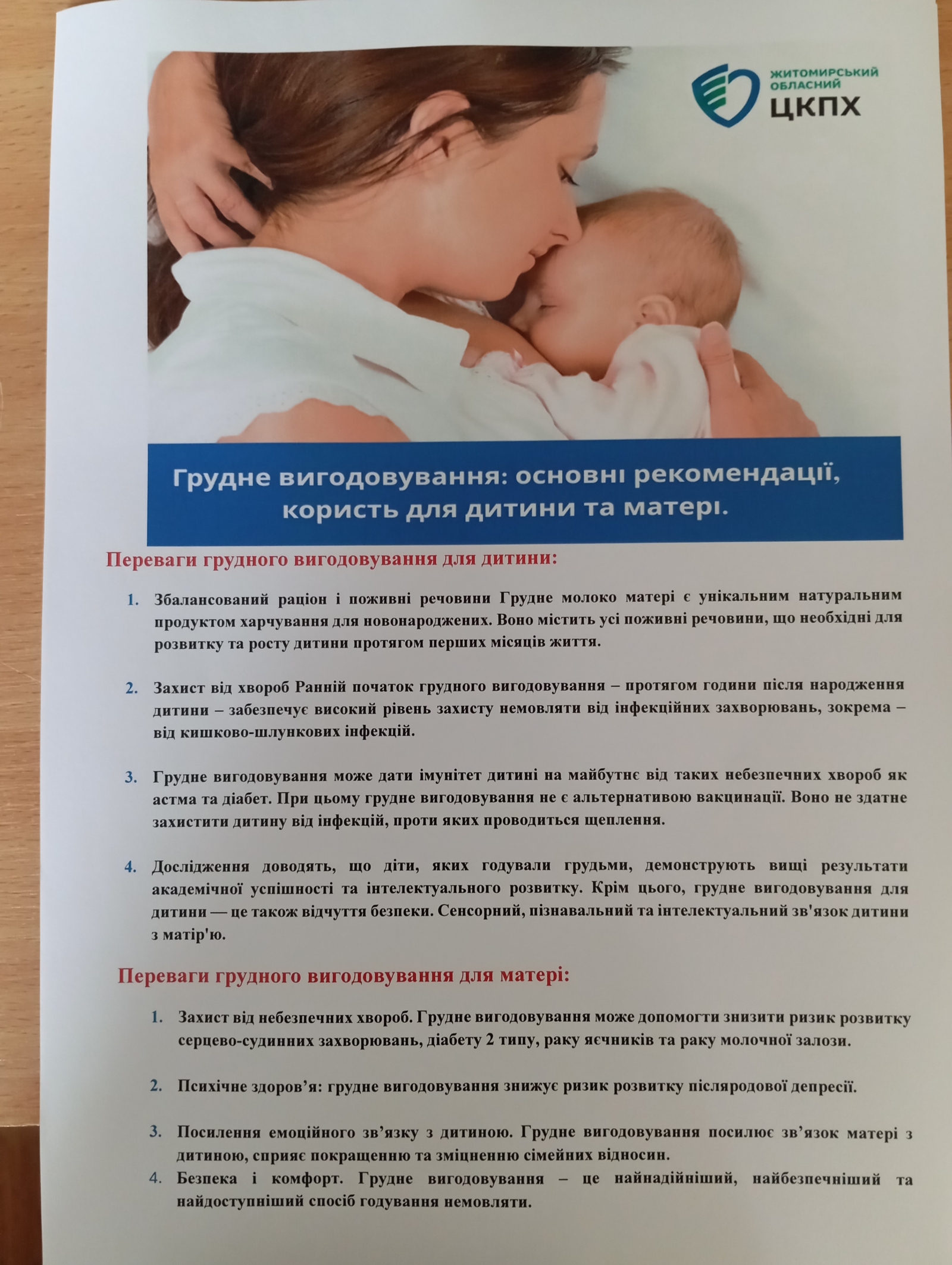 За дорученням генерального директора ДУ «Житомирський обласний центр контролю та профілактики хвороб МОЗ України» Олександра Шпити фахівці відділу епіднагляду (спостереження) та профілактики неінфекційних захворювань відвідали «Жіночу консультацію» КП «Лікарня №1» Житомирської міської ради з метою популяризації грудного вигодовування.
