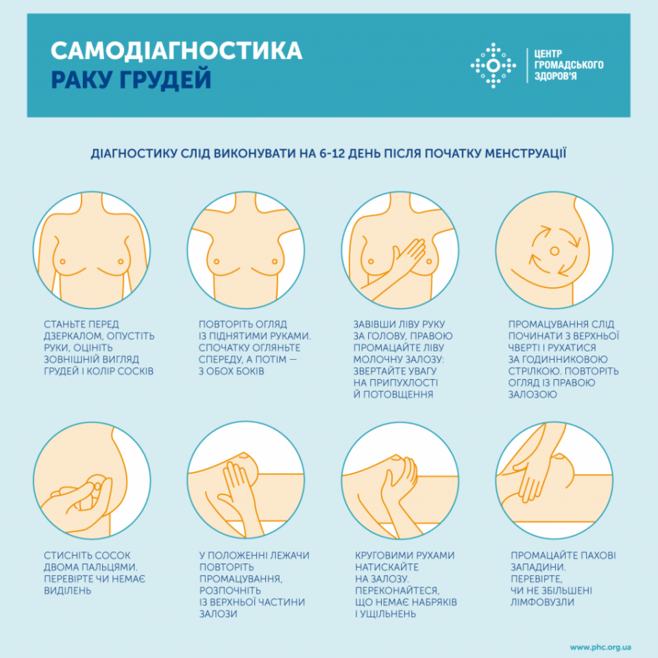 Для запобігання та вчасного виявлення раку молочної залози рекомендують щопівроку проходити профілактичний гінекологічно-мамологічний огляд з обстеженням грудей та раз на рік проходити мамографію (після 45-го року життя, якщо немає інших показань)