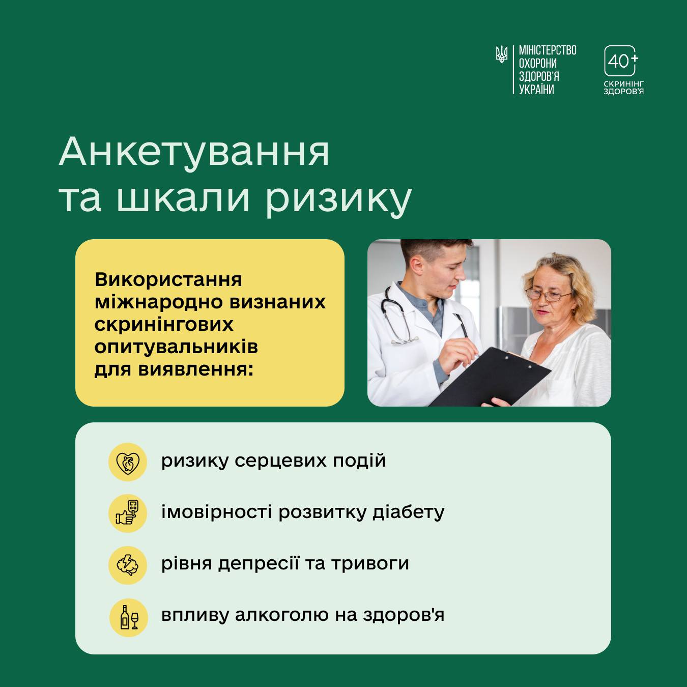 Детальніше про Скринінг здоров’я 40+: screening.moz.gov.ua