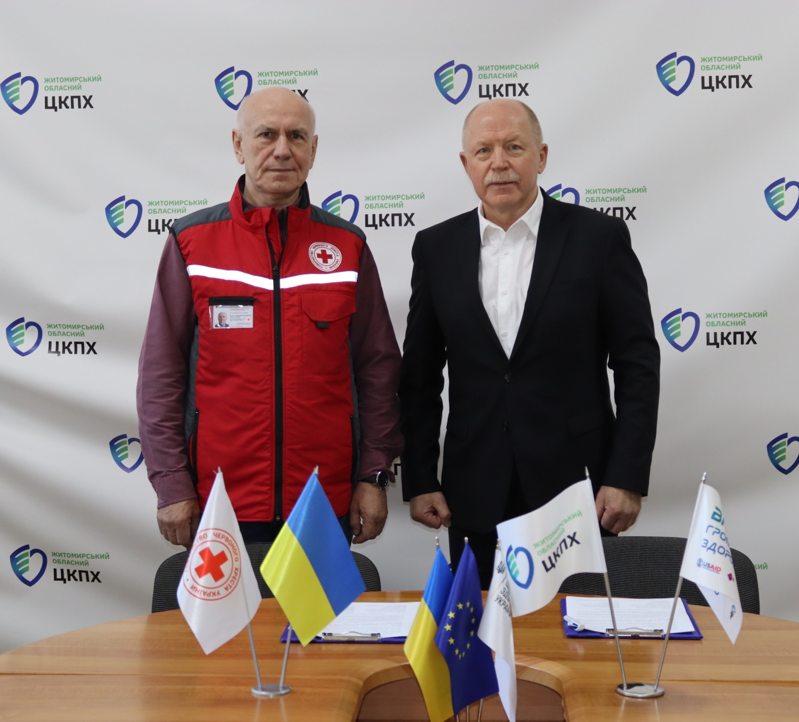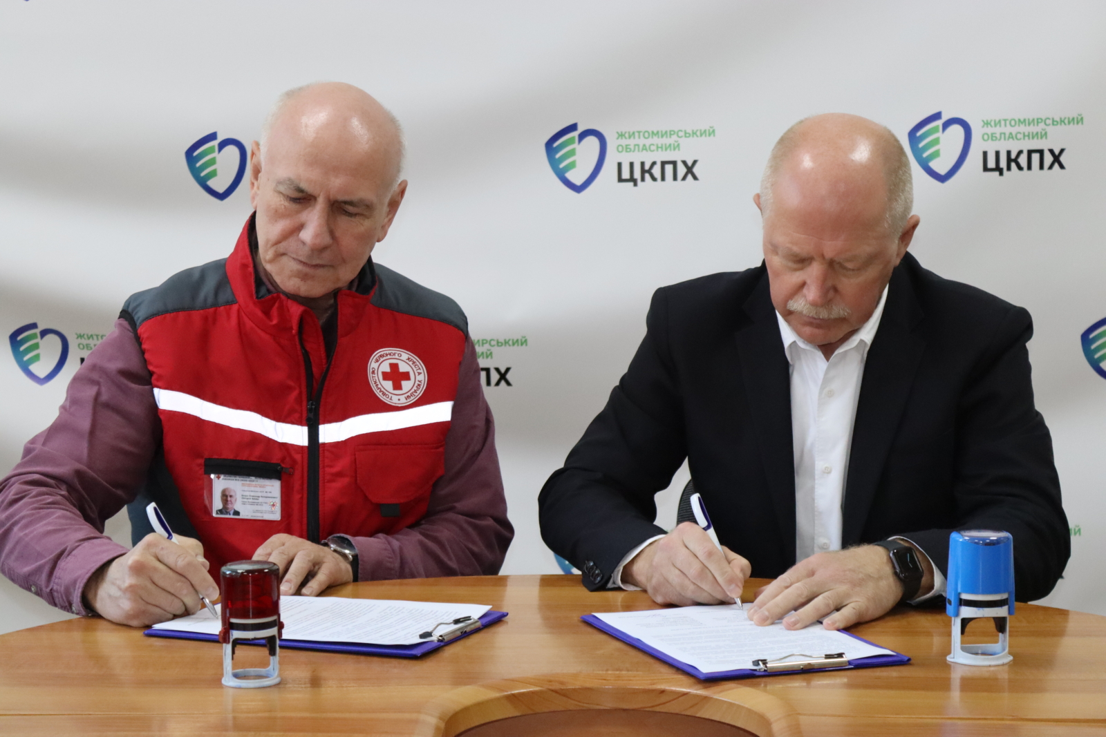 19 листопада 2025 р. за ініціативи генерального директора ДУ «Житомирський обласний центр контролю та профілактики хвороб МОЗ України» Олександра Шпити та за сприяння Голови Житомирською обласною організацією Товариства Червоного Хреста України Богдана Олександра Володимировича, було підписано Меморандум про співпрацю.