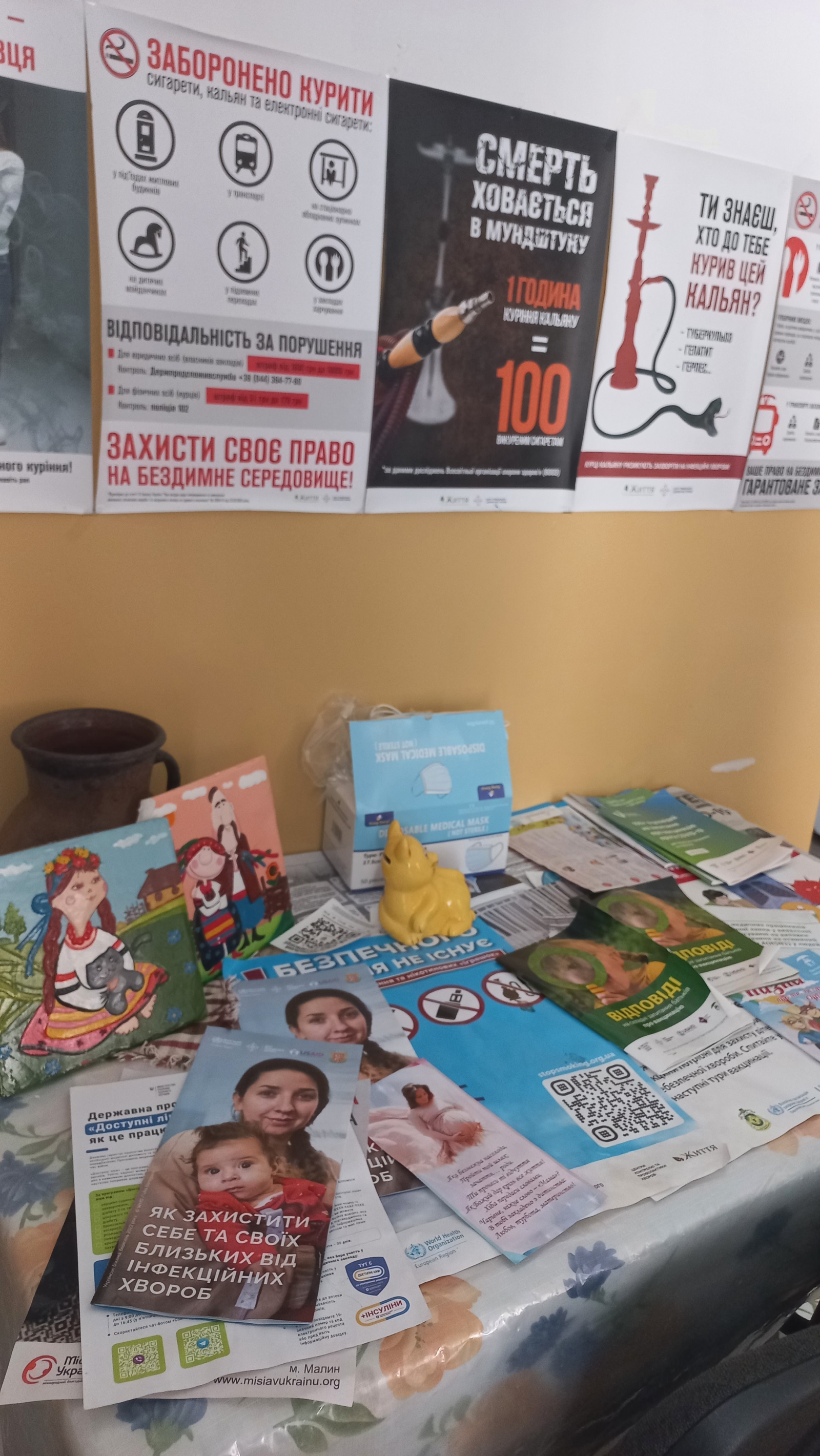 Мешканці села отримали друковані інформаційні матеріали – буклети та листівки з порадами щодо профілактики неінфекційних захворювань, карантиних інфекцій, календарі профілактичних щеплень, інформаційні матеріали стосовно серцево-судинних захворювань, імунізації населення та захисту себе і своїх близьких від вакцинокерованих інфекційних захворювань.