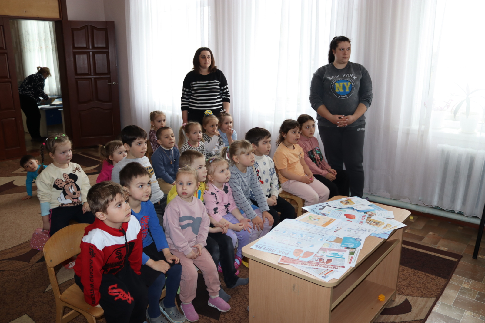 Крім того відвідали Великокоровинський ЗДО «Сонечко» де з персоналом закладу фахівці Центру та Чуднівського відділення обговорили теми профілактики хвороби Лайма, захворювання на туберкульоз та основи здорового харчування вихованців садка. Для дітей провели презентацію на тему «Обережно-сказ».