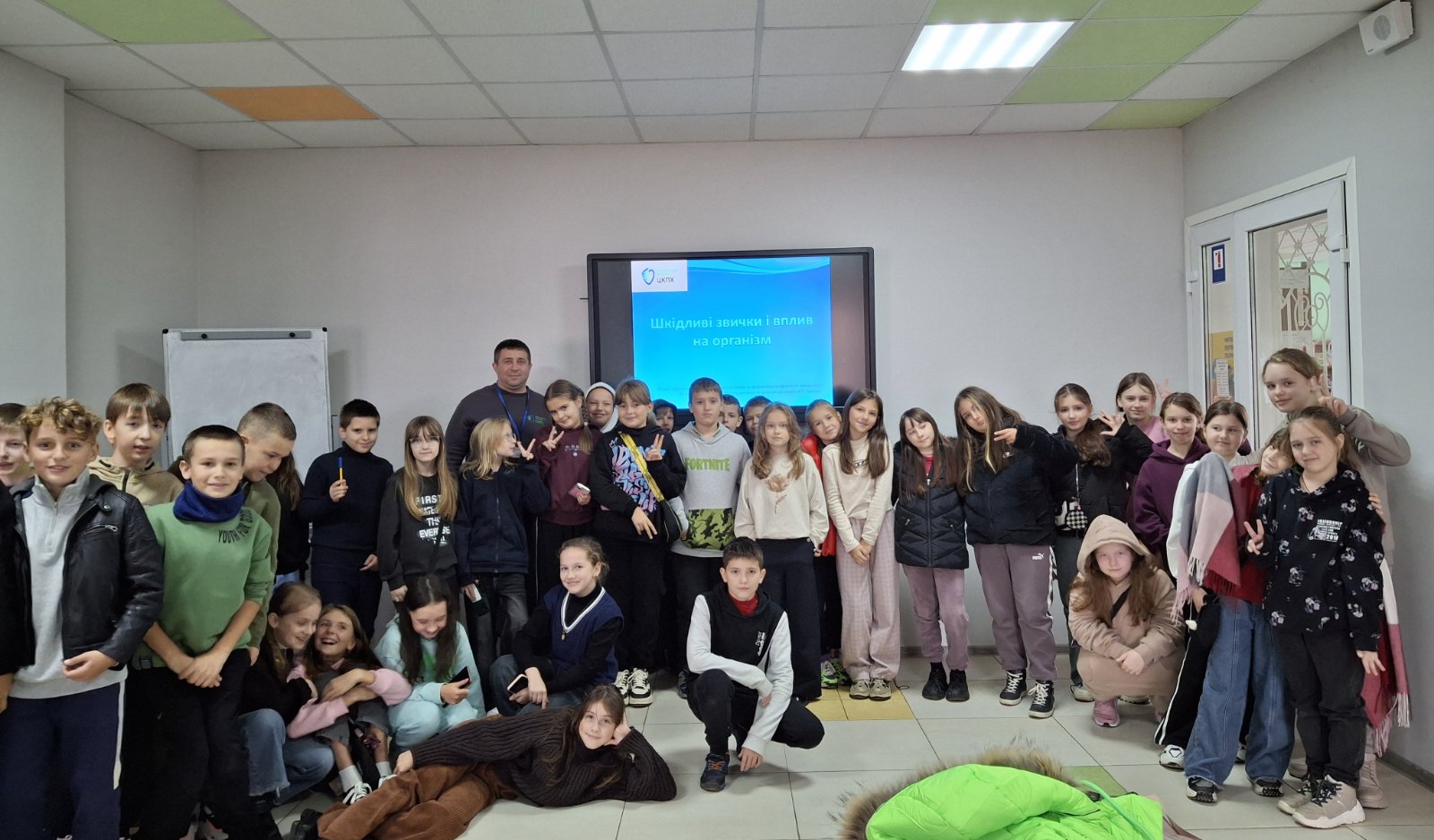 За дорученням генерального директора ДУ «Житомирський обласний центр контролю та профілактики хвороб МОЗ України» Олександра Шпити фахівці відділу епіднагляду та профілактики неінфекційних хвороб 16 жовтня поточного року провели зустріч з учнями 5-х класів ліцею №34 м. Житомира. Темою презентації стала боротьба із шкідливими звичками, зокрема палінням, гаджетозалежністю, зловживанням жирною та солодкою їжею. В цікавій формі підліткам доведено про важкі наслідки захоплення цигарками та вейпами, важливість здорового та збалансованого харчування, фізичної активності, дотримання режиму відпочинку та сну. Саме в дитячому та підлітковому віці закладаються основи здорового та тривалого життя.