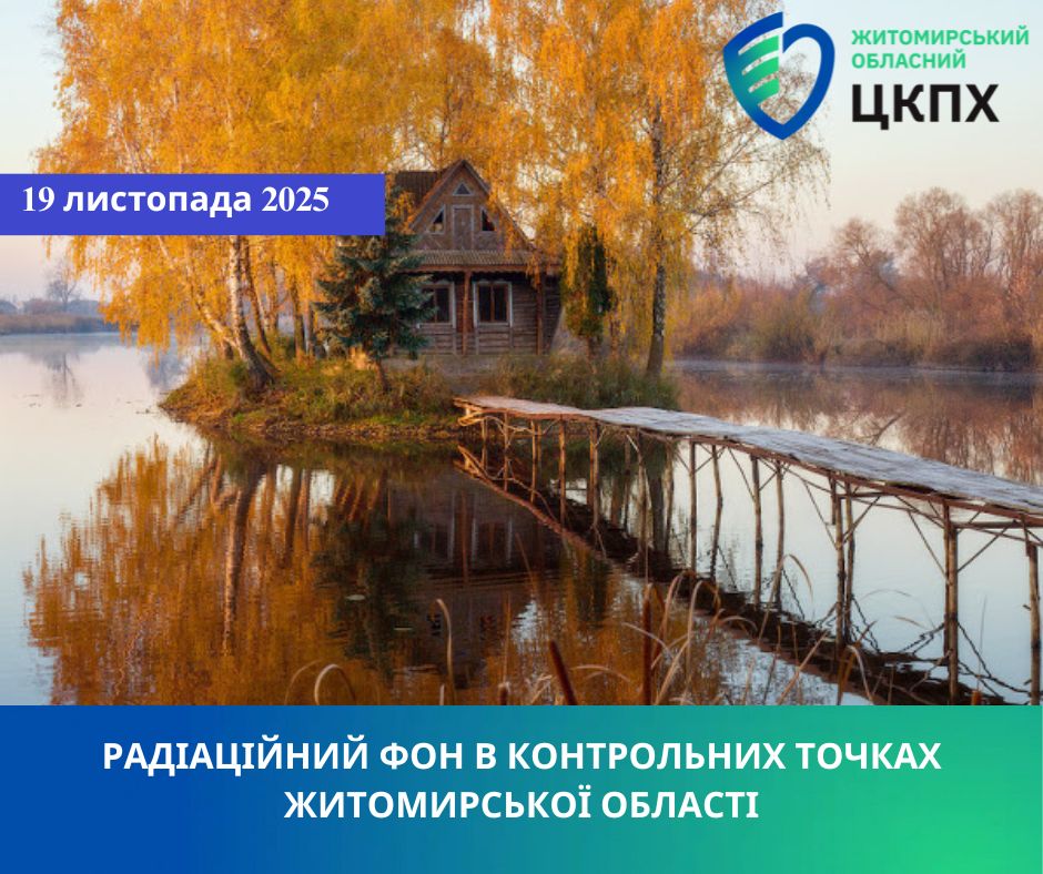 ДУ «Житомирський ОЦКПХ МОЗ України» інформує, що було проведено дозиметричний контроль на території районів та міст Житомирської області. Показники радіаційного фону становлять від 0,10 мкЗв/год до 0,16 мкЗв/год.