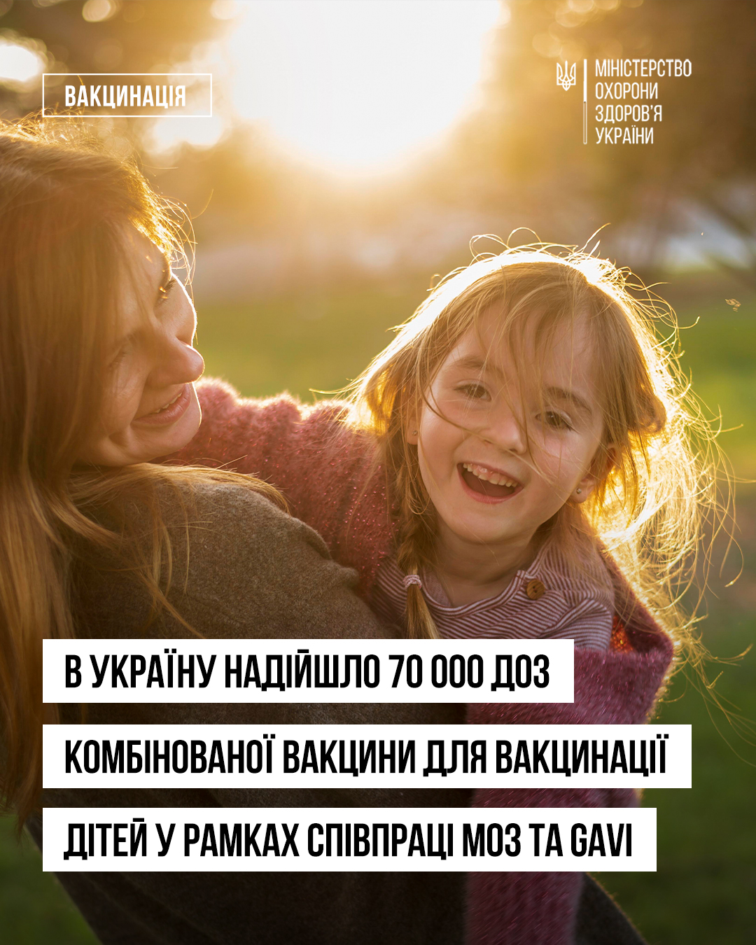 В УКРАЇНУ НАДІЙШЛО 70000 ДОЗ КОМБІНОВАНОЇ ВАКЦИНИ ДЛЯ ВАКЦИНАЦІЇ ДІТЕЙ У РАМКАХ СПІВПРАЦІ МОЗ ТА GAVI