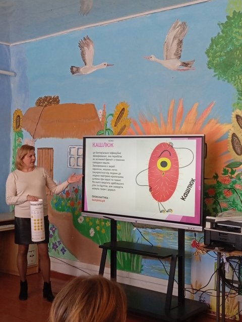 Під кінець зустрічі з дітьми провели інтерактивну гру « Розпізнай вакцинокеровану інфекцію за збудником», де діти мали змогу за фото збудника назвати інфекцію, яку він викликає.
