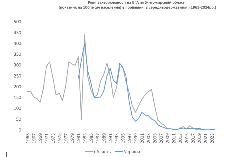 На сьогодні, показники захворюваності на ВГА в Житомирській області найнижчі за останні 20 років спостереження.