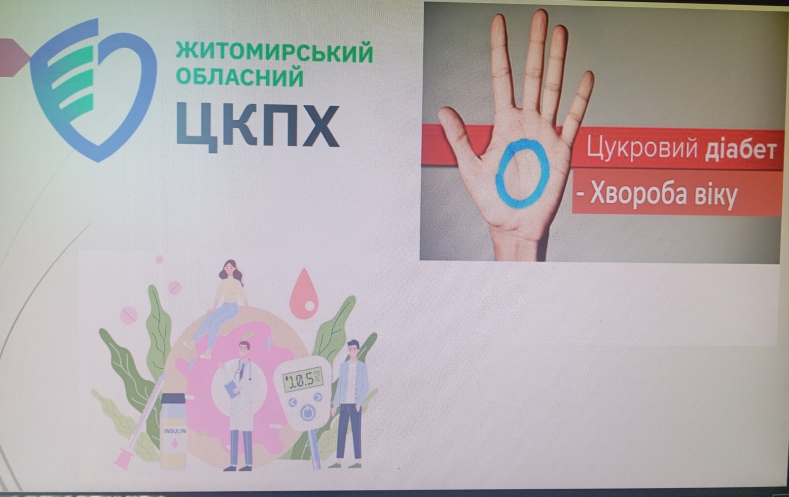 За дорученням генерального директора ДУ «Житомирський обласний центр контролю та профілактики хвороб Міністерства охорони здоров’я України» Олександра Шпити фахівці відділу епіднагляду та профілактики неінфекційних хвороб провели зустріч в Координаційному центрі надання допомоги внутрішньо переміщеним особам з Луганської області у м.Житомирі. Темою презентації стала профілактика цукрового діабету. Недостатня фізична активність, зайва вага, тютюнопаління, вживання алкоголю, нездорового харчування – фактори, які сприяють розвитку хвороби.