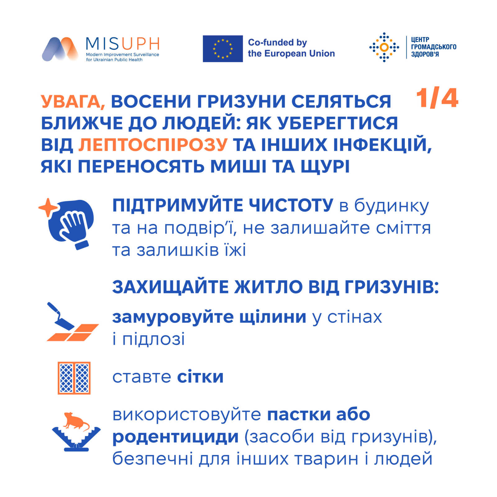 ЯК УБЕРЕГТИСЯ ВІД ЛЕПТОСПІРОЗУ ТА ІНШИХ ІНФЕКЦІЙ, ЯКІ ПЕРЕНОСЯТЬ МИШІ ТА ЩУРІ