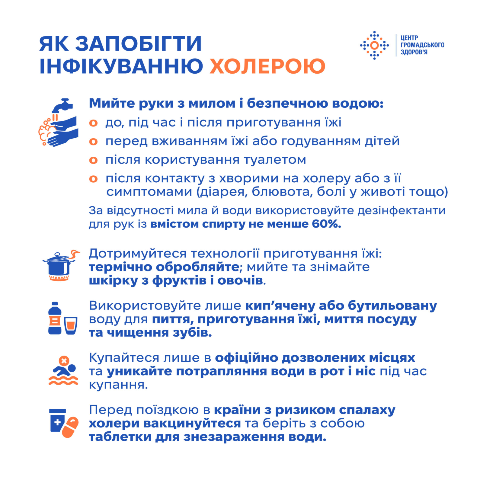 Більше про те, як убезпечити себе від зараження холерою, читайте на сайті ЦГЗ https://tinyurl.com/y9ckrj6x