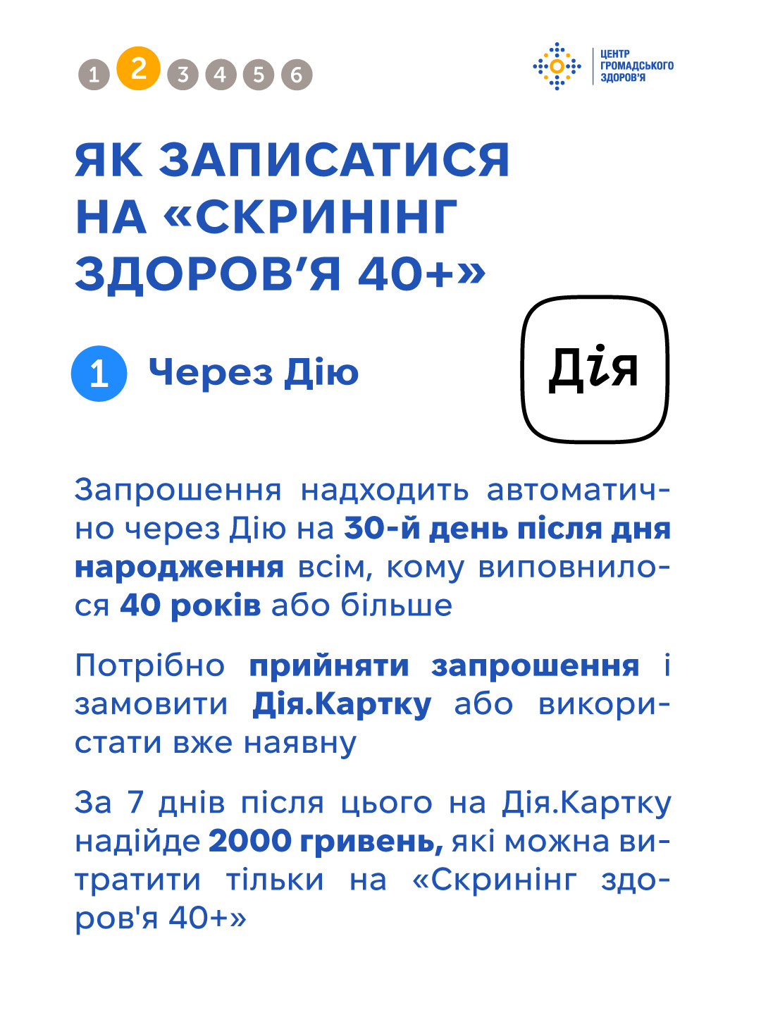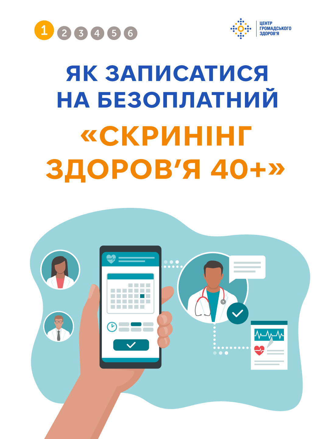 ЯК ЗАПИСАТИСЯ НА БЕЗОПЛАТНИЙ “СКРИНІНГ ЗДОРОВ’Я 40+”