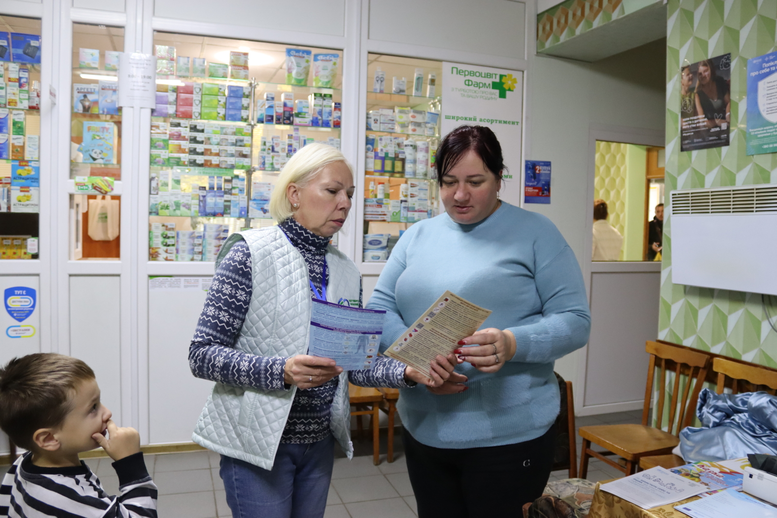 Мешканці села отримали просвітницьку друковану продукцію – інформаційні пам’ятки щодо профілактики раку молочної залози та шийки матки у жінок, чоловічого здоров’я, буклети з інформацією щодо імунізації населення та захисту себе і своїх близьких від неінфекційних і вакцинокерованих інфекційних захворювань.