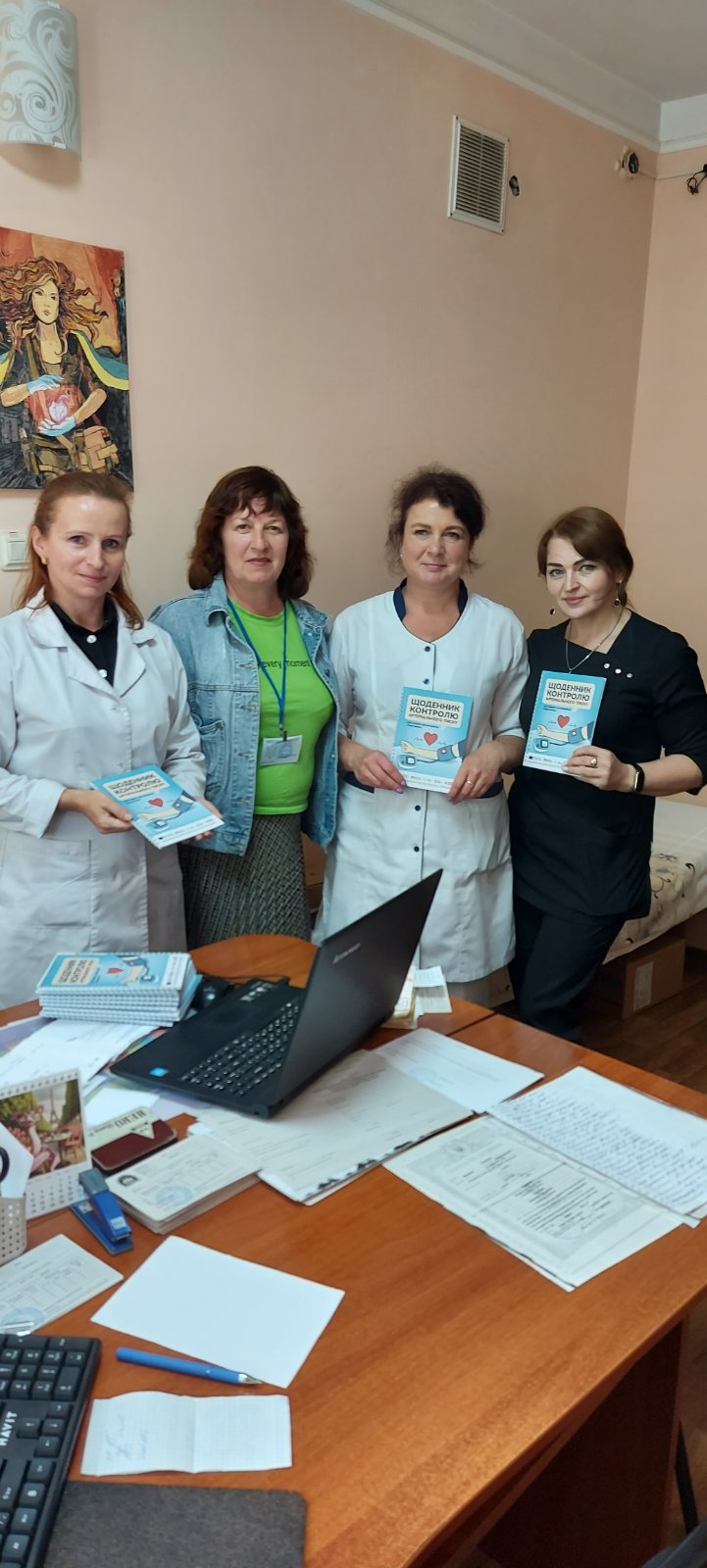Для людей з артеріальною гіпертензією сімейний лікар центру первинної допомоги отримала щоденники контролю артеріального тиску.