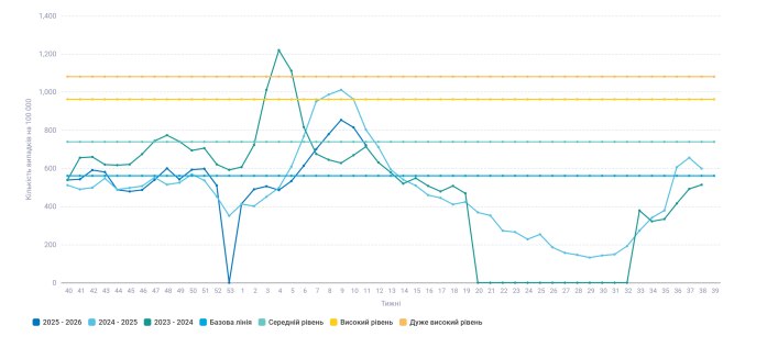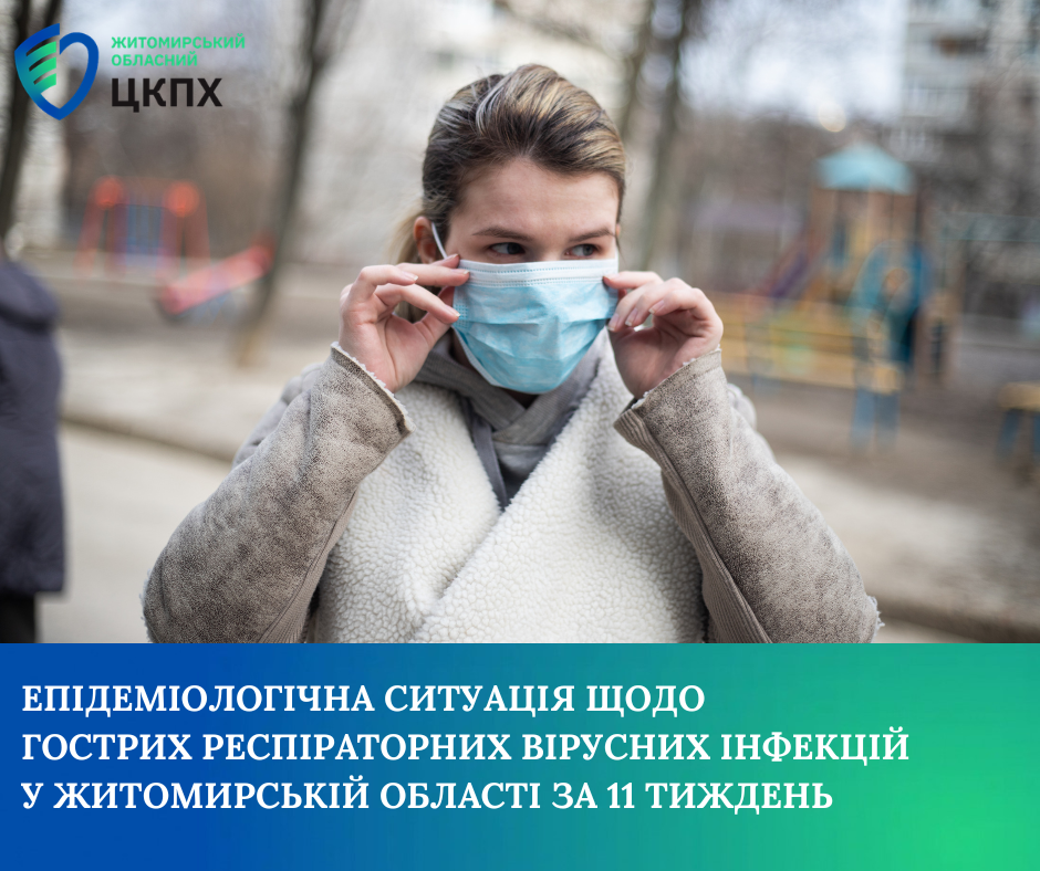 Протягом двох тижнів поспіль захворюваність на гострі респіраторні вірусні інфекції серед населення Житомирської області продовжує знижуватись. Так, протягом 11 тижня 2026 року зареєстровано 8507 випадків (721,1 на 100 тис.нас.), що на 11,6% менше ніж минулого тижня. В тому числі 18 випадків Covid-19, що на рівні минулого тижня, 3 з них серед дітей. Показники захворюваності залишаються вище епідемічного порогу на 28,5% і відповідають середньому рівню інтенсивності епідемічного процесу.