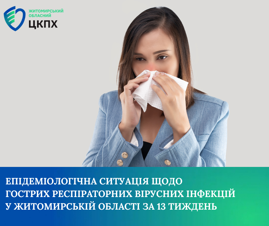 Захворюваність на ГРВІ та COVID-19 у Житомирській області за 13 тиждень