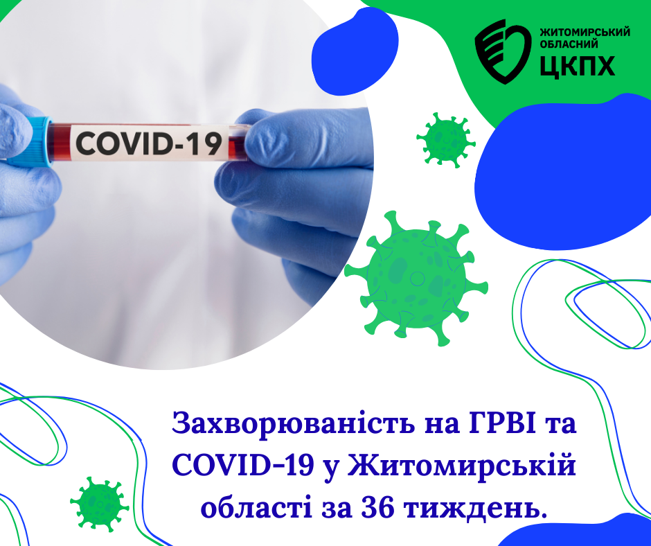 Захворюваність на ГРВІ та COVID-19 у Житомирській області за 36 тиждень.