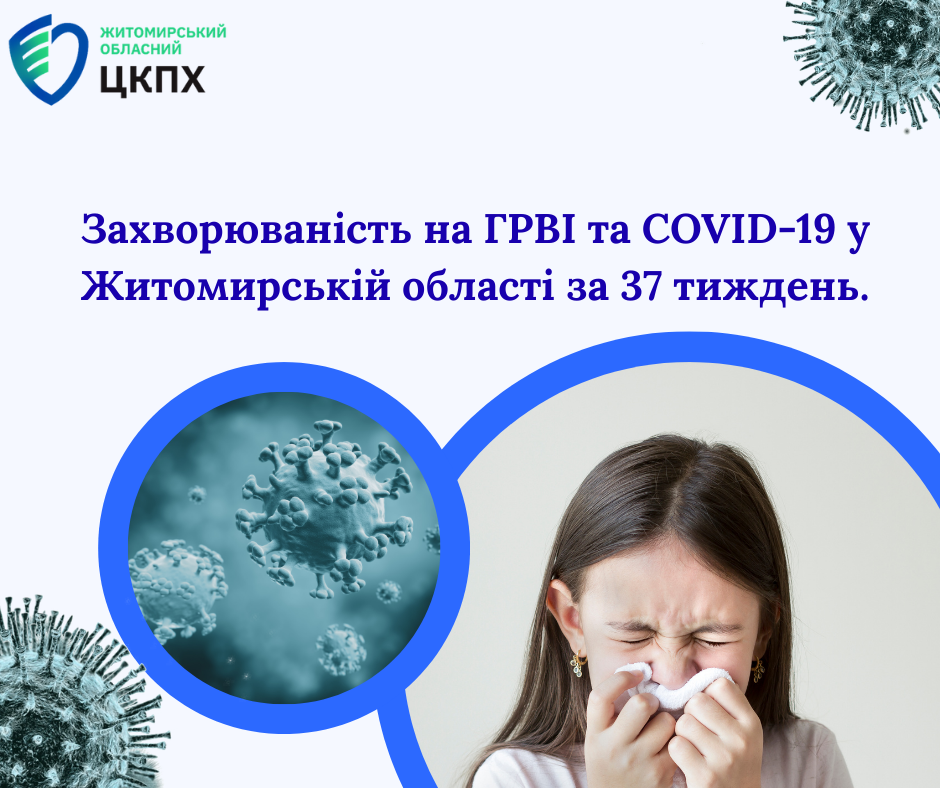 Захворюваність на ГРВІ та COVID-19 у Житомирській області за 37 тиждень.