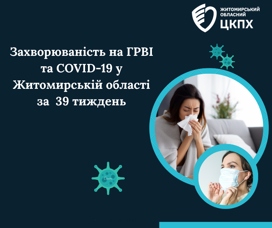 Захворюваність на ГРВІ та COVID-19 у Житомирській області за 39 тиждень