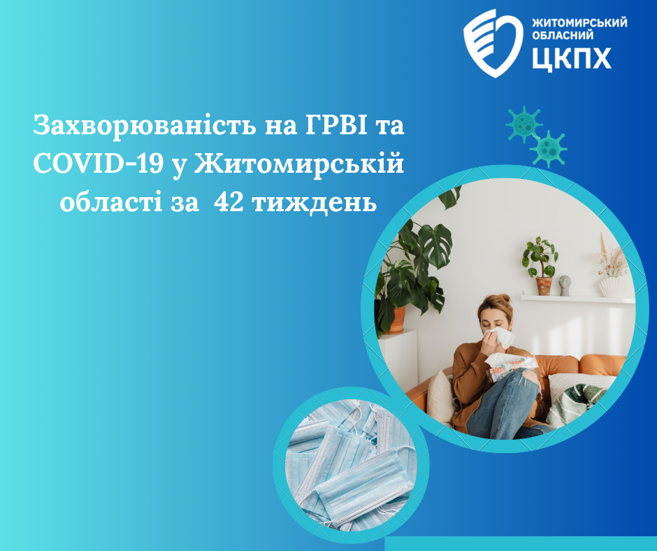 Захворюваність на ГРВІ та COVID-19 у Житомирській області за 42 тиждень