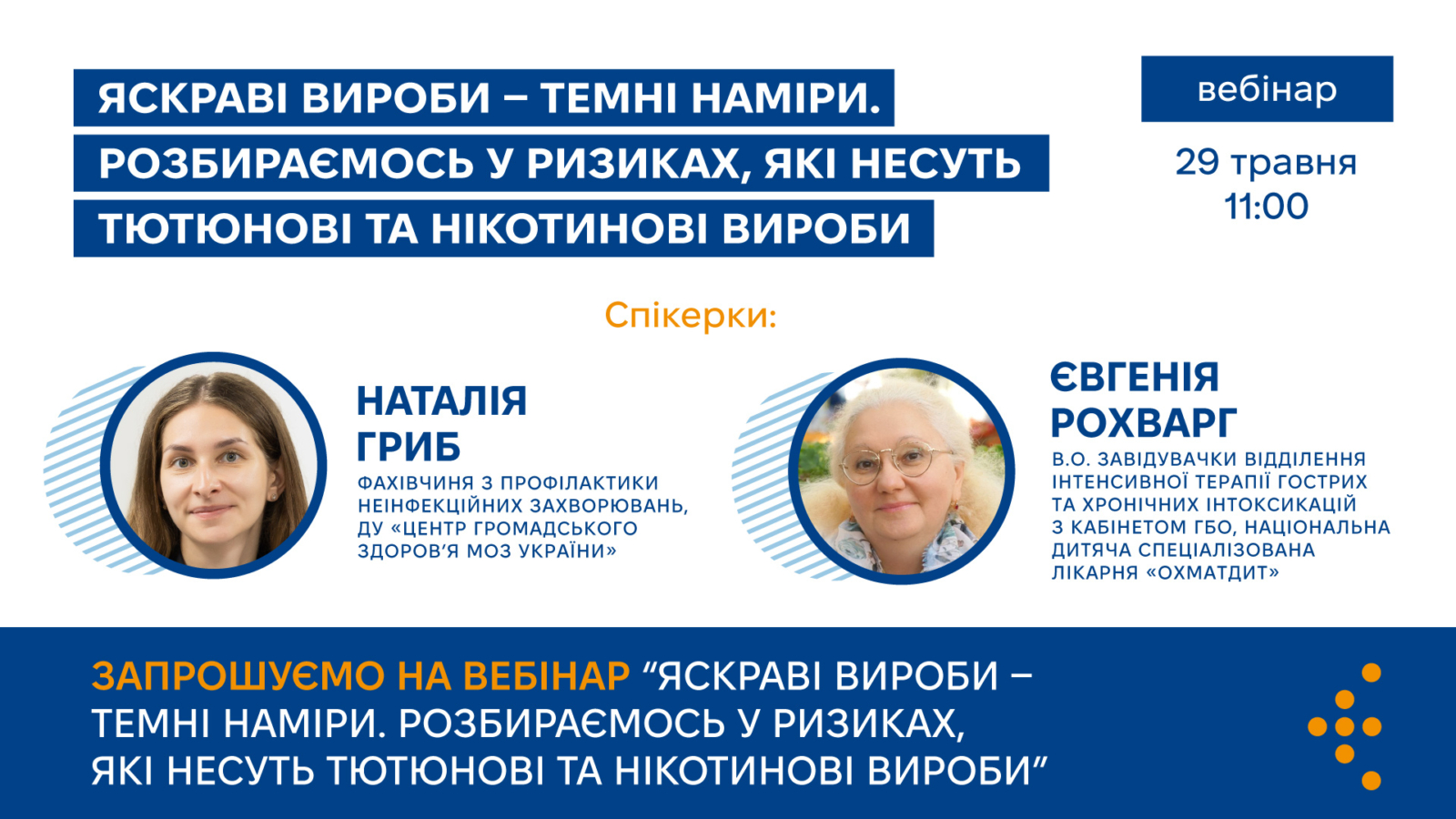 Запрошуємо на вебінар «Яскраві вироби — темні наміри. Розбираємось у ризиках, які несуть тютюнові та нікотинові вироби».