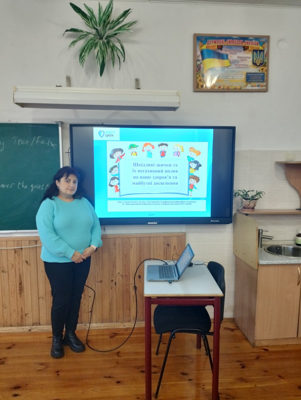 Згідно плану заходів з реалізації Національної стратегії розбудови безпечного і здорового освітнього середовища у новій школі на 2024 рік фахівцями Житомирського обласного відділу епіднагляду (спостереження) та профілактики неінфекційних захворювань спільно з працівниками Житомирського районного відділу провели заняття на тему «Шкідливі звички та їх негативний вплив» для учнів 6-х класів ліцею №2 міста Житомира.